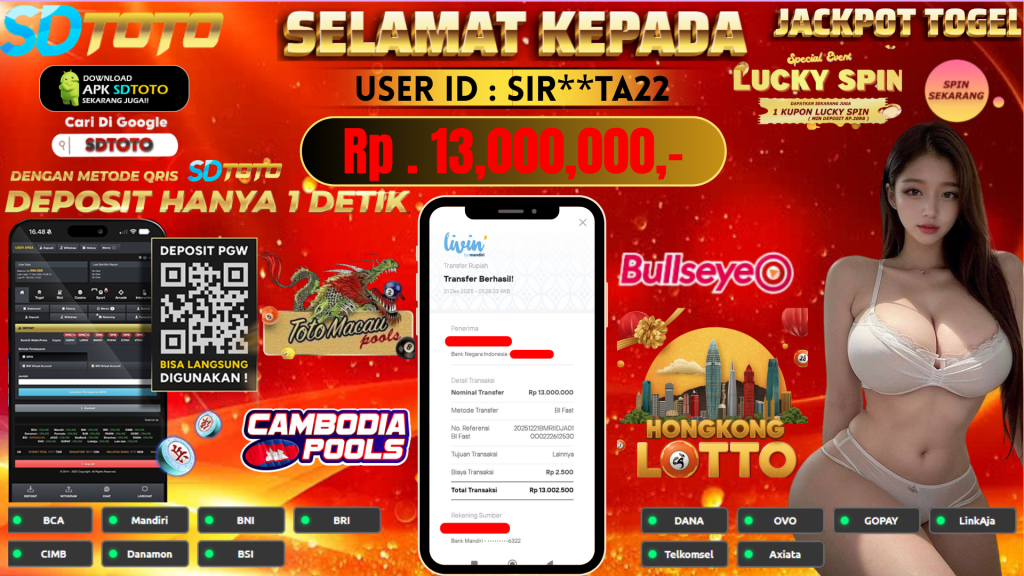 BUKTI PEMBAYARAN JACKPOT TOGEL SDTOTO 21 Desember 2025 Posted by Anandalia JACKPOT TOGEL SDTOTO TERPERCAYA Minggu, 21 Desember 2025 Rp. 13,000,000,00,- SELAMAT KEPADA PEMENANG, SALAM JACKPOT !! Updated: 21 Desember 2025 at 02:42 ◀ BUKTI PEMBAYARAN JACKPOT SLOT SDTOTO The Ultimate Casino Site with Bonus Review ▶