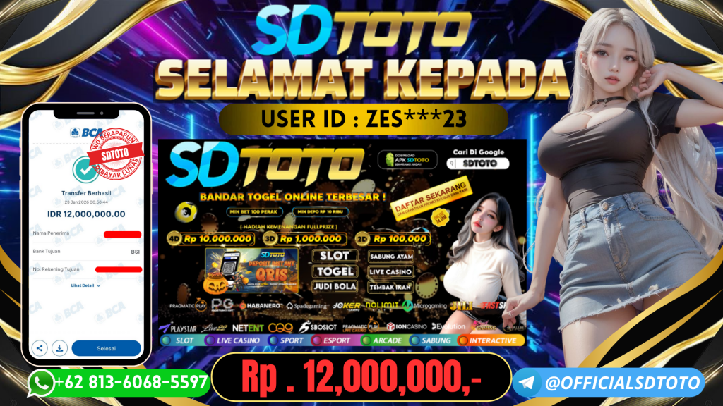 BUKTI PEMBAYARAN JACKPOT TOGEL SDTOTO 23 Januari 2026 Posted by Anandalia JAKPOT TOGEL HONGKONG POOLS SDTOTO!!! Jumat,23 JANUARI 2026 Rp 12,000,000,00,– SELAMAT KEPADA PEMENANG, SALAM JACKPOT!! Updated: 23 Januari 2026 at 08:18 ◀ BUKTI PEMBAYARAN JACKPOT SLOT SDTOTO Prediksi Togel Magnum Cambodia Hari Ini ▶