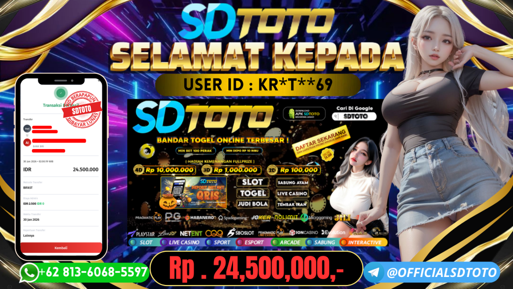 BUKTI PEMBAYARAN JACKPOT TOGEL SDTOTO 30 Januari 2026 Posted by Anandalia JACKPOT TOGEL CAMBODIA SDTOTO!! Jumat,30 JANUARI 2026 Rp 24,500,000,00,– SELAMAT KEPADA PEMENANG, SALAM JACKPOT!! Updated: 30 Januari 2026 at 05:17 ◀ Prediksi Togel Hongkong dan Boc oran Toto HK Hari Ini ~ SDTOTO BUKTI PEMBAYARAN JACKPOT SLOT SDTOTO ▶